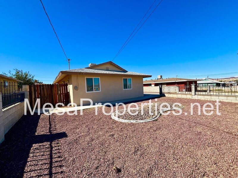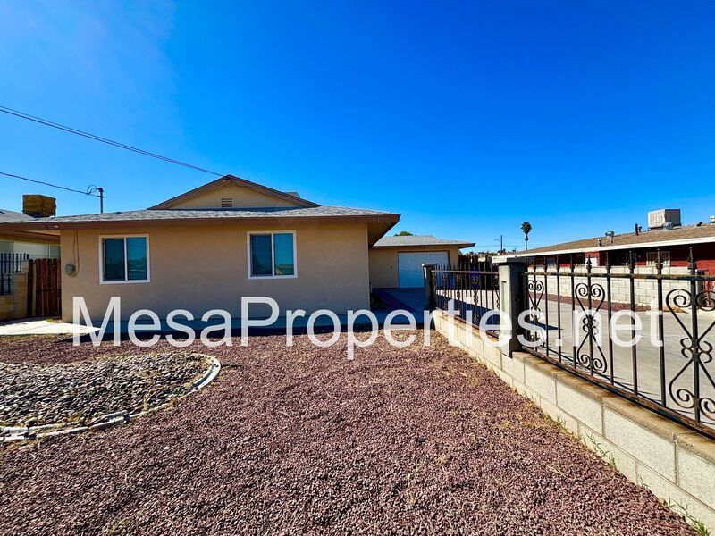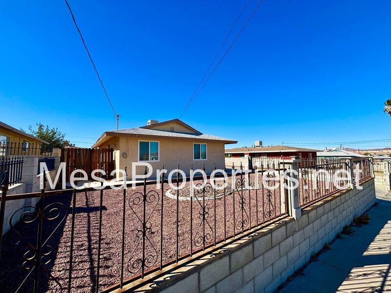 This two-bedroom, one-bathroom home is situated in Barstow, conveniently located just a minute from the 15th and 40th freeways. From the street, you will be greeted by a spacious concrete driveway and low-maintenance front landscaping. The interior features plank flooring and tile throughout, simplifying daily upkeep. The kitchen stands out with its soft close drawers and cabinet doors, adding a contemporary touch to your cooking area. Conveniently, the home includes a large one-car garage with washer and dryer hookups, eliminating the need for frequent trips to laundromats. Ceiling fans are installed in each bedroom to ensure comfort and cooling. The exterior complements the interior with a block wall that encloses the backyard, creating a private retreat.