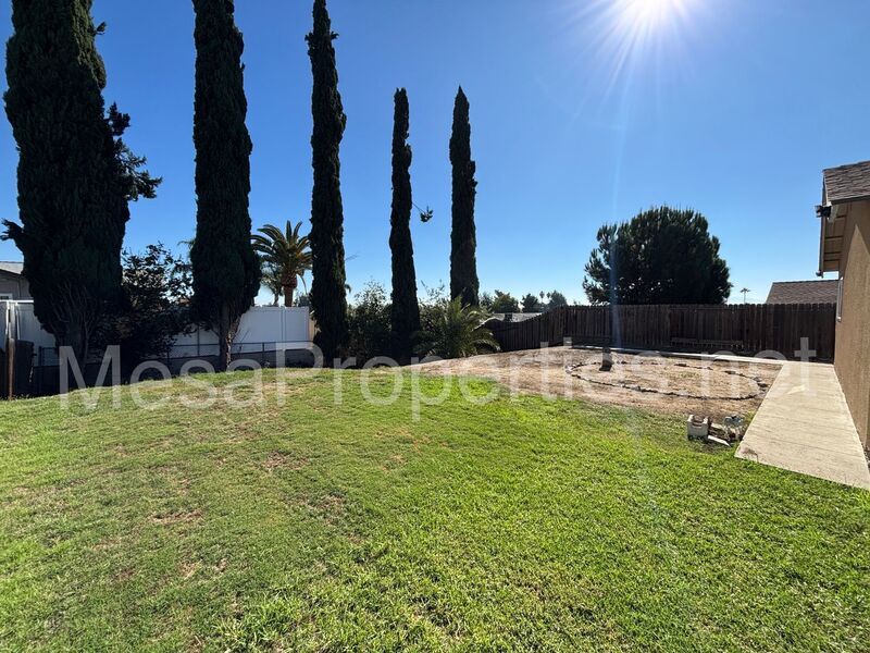 A sliding glass door leads from the kitchen to a patio and expansive fenced backyard, perfect for relaxing or entertaining. The attached two-car garage includes laundry hook-ups, with extra parking available along the driveway and street.