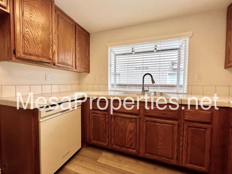 The kitchen offers lots of storage space with its wooden cabinets and drawers. Appliances include a microwave, stove, and dishwasher. A refrigerator will be provided before tenancy. Access to the attached 2-car garage is right next to the kitchen. Laundry hook-ups are also located inside the garage.